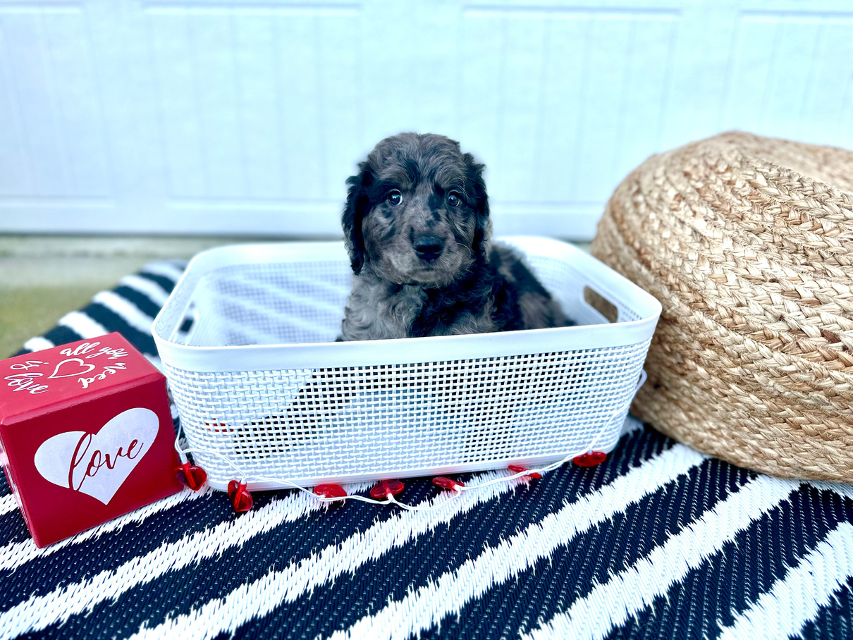 F2 Goldendoodles occur when two existing 50/50 goldendoodles are bred. We expect the offspsring of Estella and Roberts will range in size, but would qualify as medium F2 goldendoodles with an anticipated weight of 25 - 40lbs. Each puppy is being reared in a home with a small child. They will have social experiences, and will have received intial shots, Fi nano microchip, deworming, foundational potty training, and 30 days of insurance from pickup from Trupanion ( at no cost to new owner).