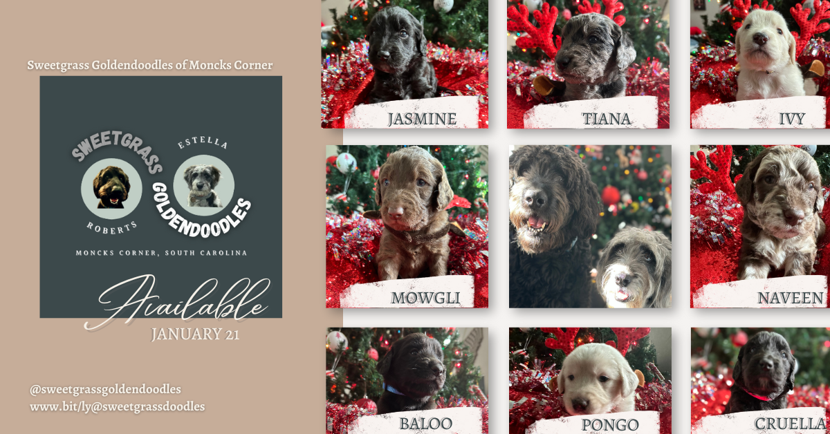 Sweetgrass Goldendoodles of Moncks Corner is an ethical boutique breeding service. Located in Moncks Corner, SC, we have highly selective breeding practices. Above all, we take pride in the physical health, emotional care, and happiness of our Sire, Dame, and all of their puppies.